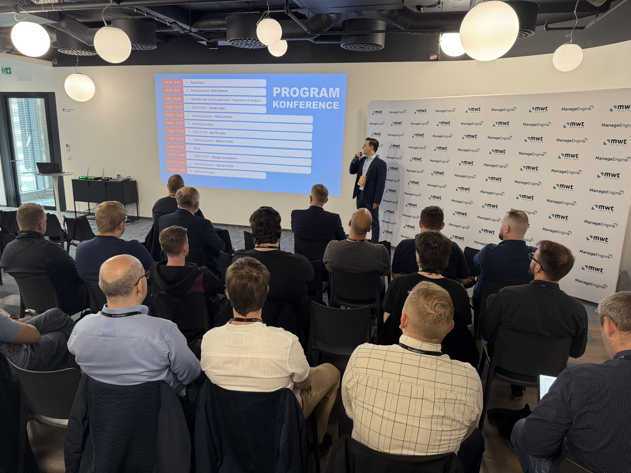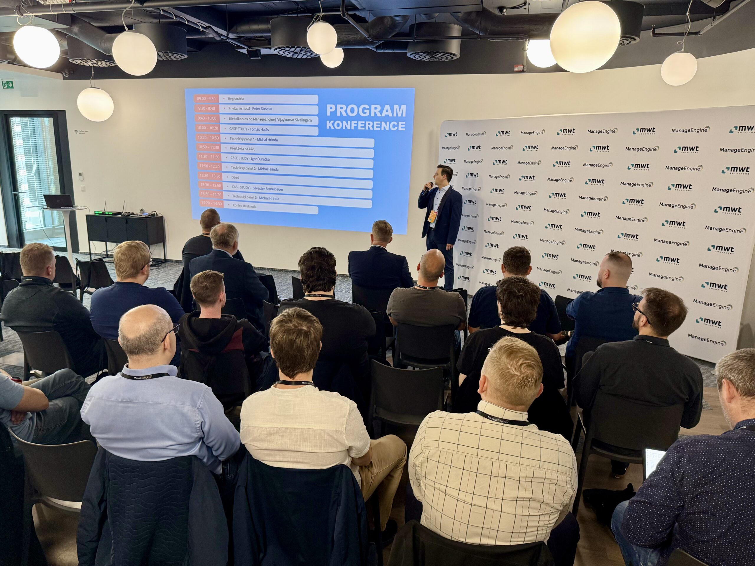 Nasledovala odborná časť – prípadové štúdie prezentované našimi zákazníkmi. Každá prezentácia nebola len ukážkou úspešných implementácií, ale aj praktickým sprievodcom reálnymi výzvami, ktorým IT tímy v rôznych odvetviach čelia. Po jednotlivých prezentáciách viedli naši experti – Menef Khalife a Michal Hrinda z MWT Solutions – technické panely, počas ktorých rozobrali detaily implementácií, možné scenáre ďalšieho rozvoja a odpovedali na otázky účastníkov.
