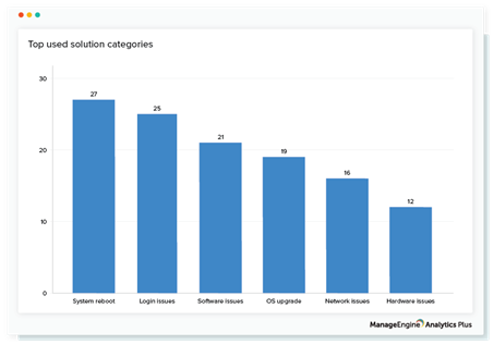 W przypadku incydentów, część zgłaszających od razu zarejestruje odpowiednie zgłoszenie w systemie oczekując na rozwiązanie ze strony wyznaczonych w tym celu osób. Jednak należy pamiętać także o użytkownikach, którzy przejmują inicjatywę i samodzielnie poszukują rozwiązań. Umieszczenie odpowiednich instrukcji zmniejszy liczbę rejestrowanych zgłoszeń, a tym samym odciąży serwisantów. W celu pozyskania informacji o tym, jak baza rozwiązań wpływa na rozwiązywanie zgłoszeń, można wygenerować odpowiedni raport. Dane przedstawią stosunek wszystkich zgłoszeń, do zgłoszeń rozwiązanych z użyciem bazy wiedzy.