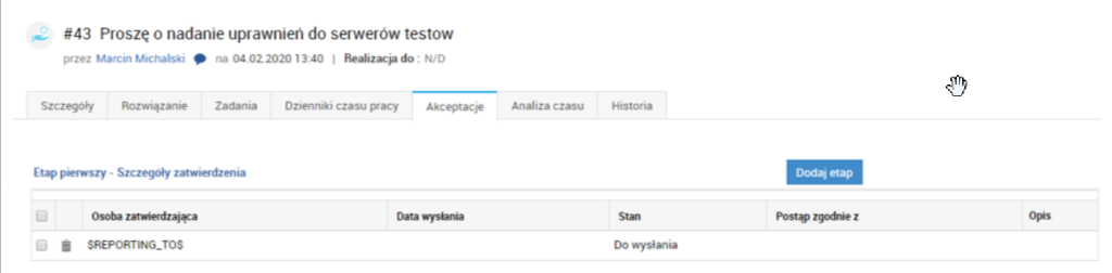 Automatycznie przypisze się osoba akceptująca, np. przełożony.