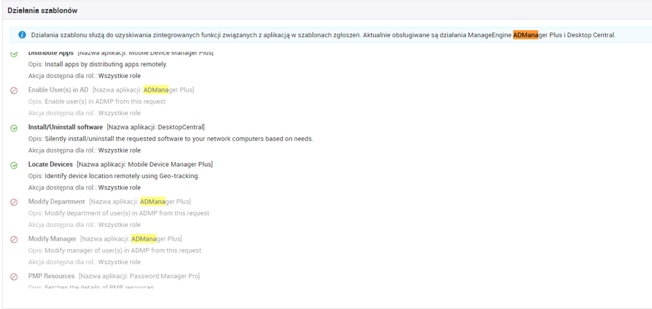 W ServiceDesk Plus konfigurujemy szablon uprawnień.