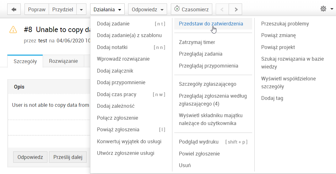 W przypadku incydentów w momencie utworzenia zgłoszenia musi ono zostać przedstawione „ręcznie” do akceptacji lub za pomocą dodatkowych skryptów.