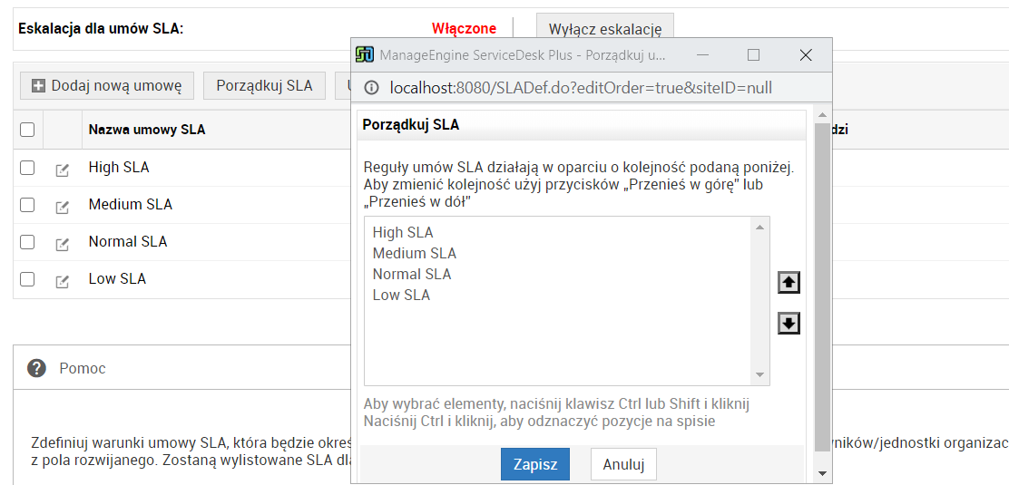 Warto zauważyć, że konfiguracja umów SLA to jedno, natomiast bardzo ważne jest również ustawienie ich w odpowiedniej kolejności.