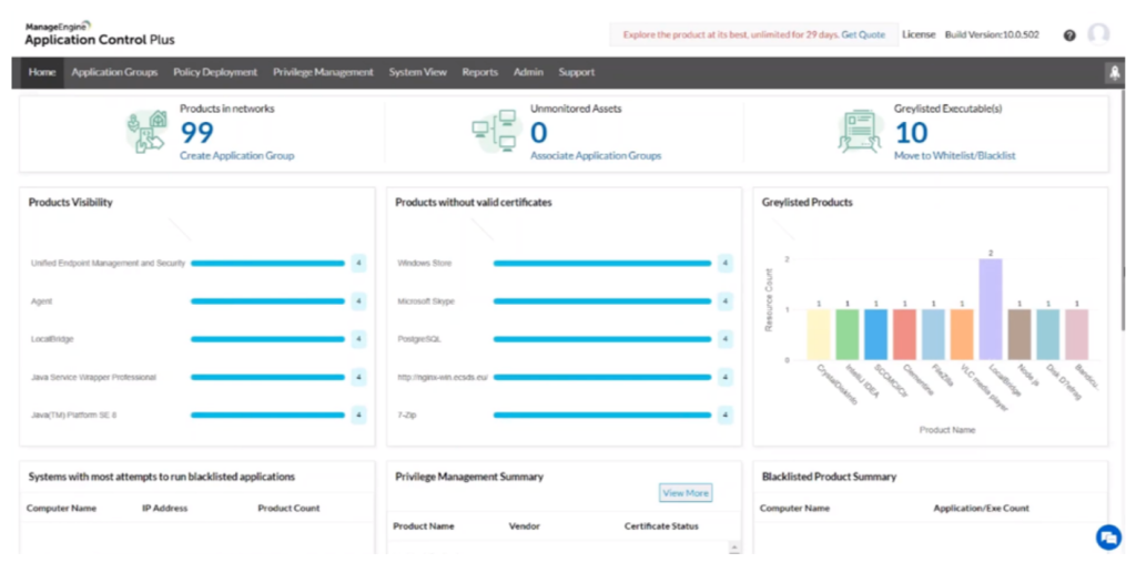 Biorąc pod uwagę przedstawione powyżej dane, często możesz spotykać się z problemem łatania/aktualizowania aplikacji, co może być bardzo uciążliwe. Jeśli oddałbyś możliwość decydowania o tym swoim pracownikom, jestem pewien że niektórzy pracowaliby jeszcze na Windowsie 1.01. Dzięki narzędziu od ManageEngine możesz monitorować jakiego rodzaju oprogramowanie i w jakiej wersji posiadają Twoi użytkownicy.